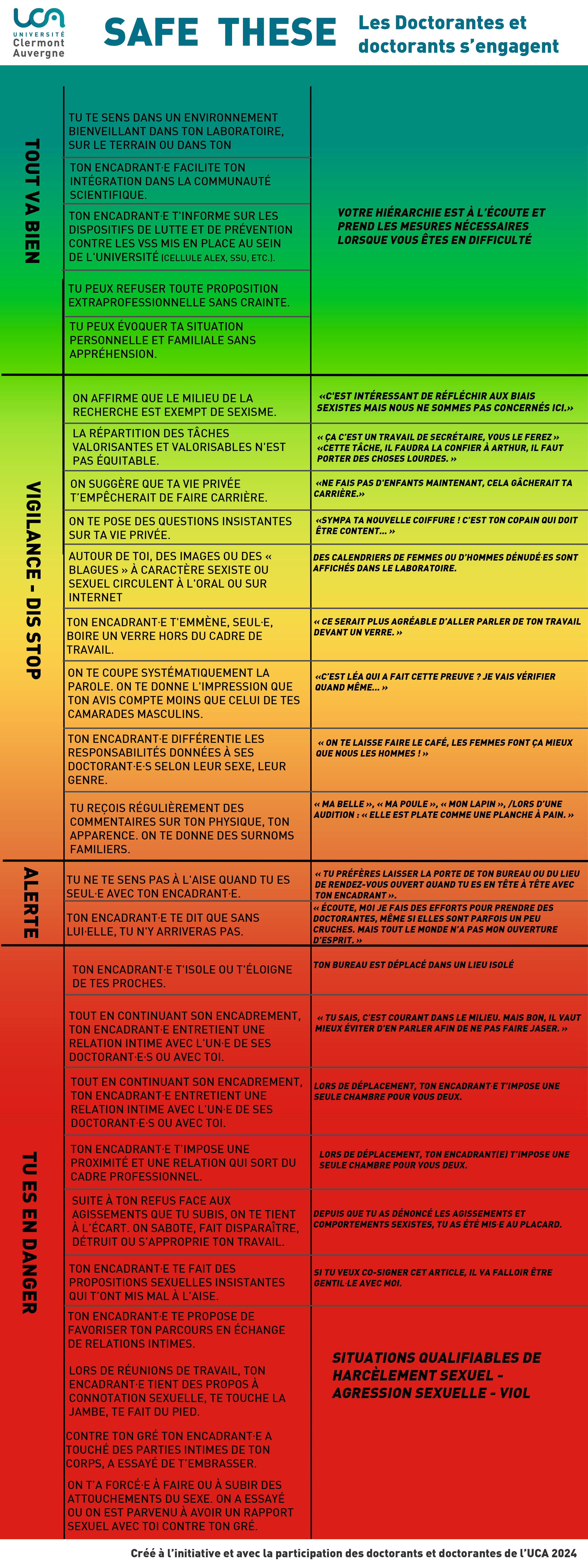 Dans le but de lutter contre les violences sexistes et sexuelles , le comité égalité et lutte contre les discriminations de l’Université Clermont Auvergne a mis en place Alex, la cellule d’écoute et d’accompagnement face aux violences sexistes et sexuelles et aux discriminations.